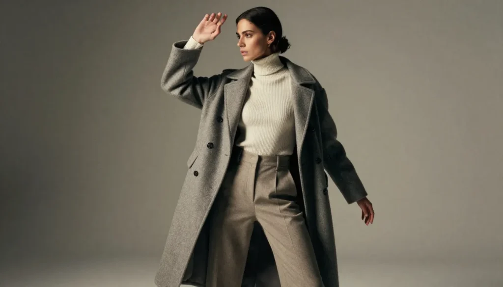 Professional environments require warmth and sophistication. Turtlenecks under blazers, tailored wool trousers, knee-length wool skirts paired with tights, and structured coats all work beautifully. Stick to materials that hold their shape and resist wrinkling.