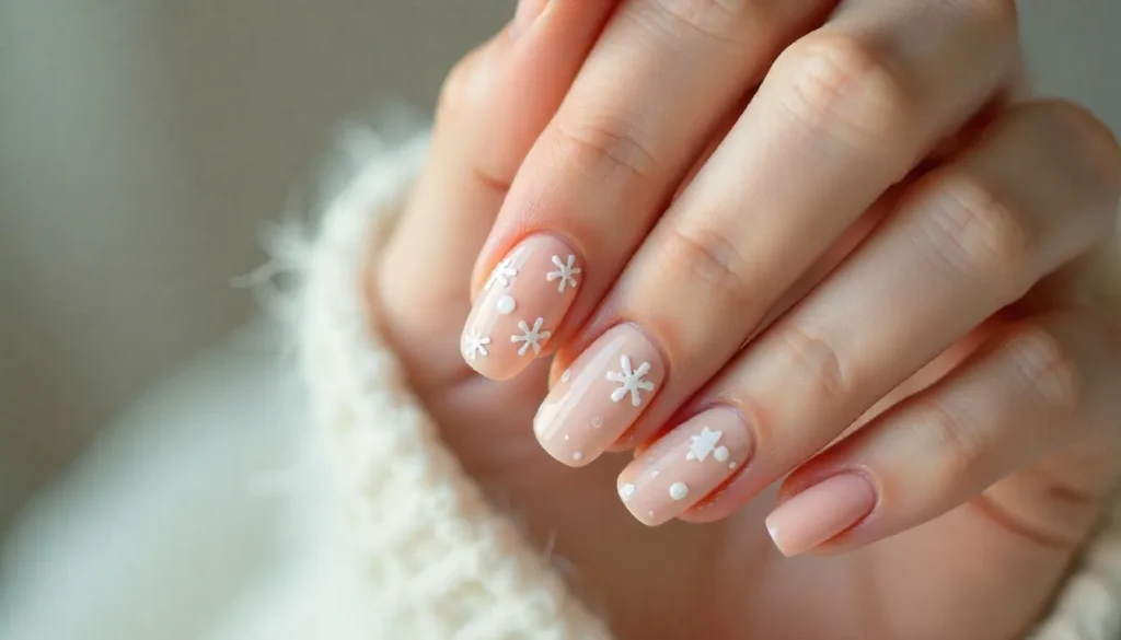 Modern Christmas nails take a more minimalist or fashion-forward approach. Neutral bases with tiny festive details, metallic finishes, or abstract winter patterns appeal to people who want seasonal nails without obvious holiday imagery.